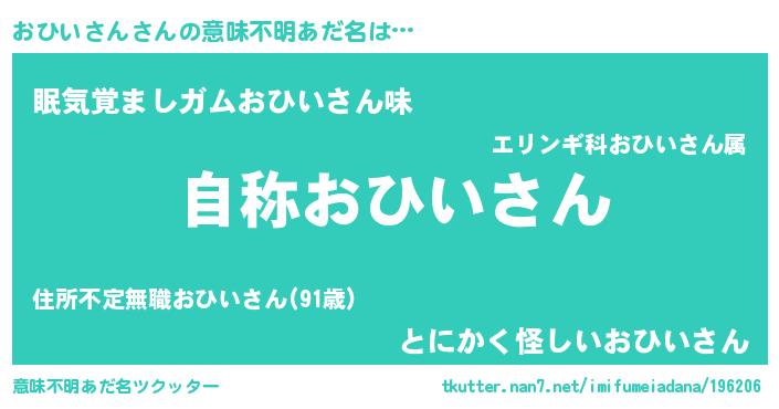 | 男性向けラノベタイトル風あだ名 | 『Re:おひいさんから始める異世界生活』 |