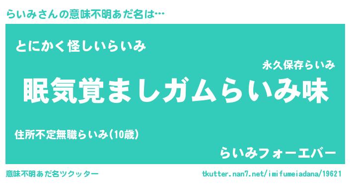 | ヒーロー風カッコイイあだ名 | 『慈愛の使者らいみ』『炎刃騎士ライ』 |