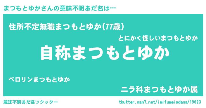 | 男性向けラノベタイトル風あだ名 | 『Re:まつもとゆかから始める異世界生活』 |