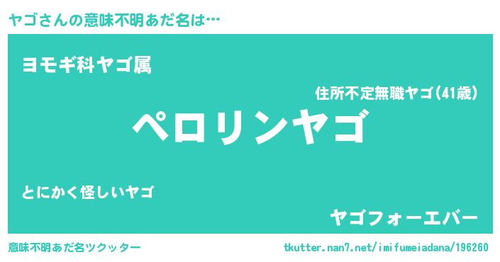 | ピコ太郎風あだ名 | 『ヤコ三郎』『ピヤ二郎』『ヤゴ史郎』 |