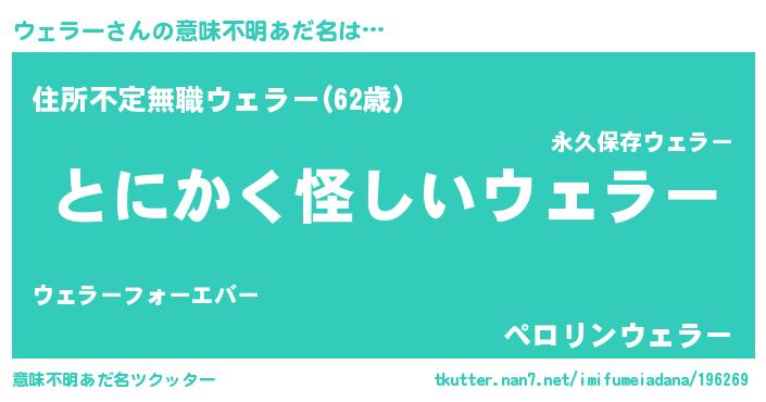 | ヘコむあだ名 | 『ウェぷりん』『ウェもー』『豆乳』 |