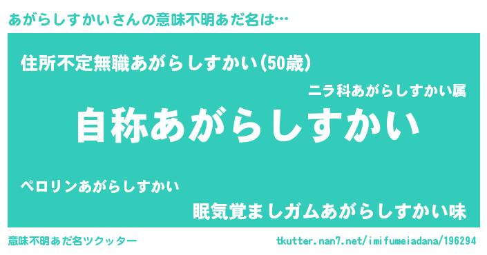 | 胡散臭い通販商品みたいなあだ名 | 『ガンによく効く高麗人参…その名も「あがらしすかい」』 |