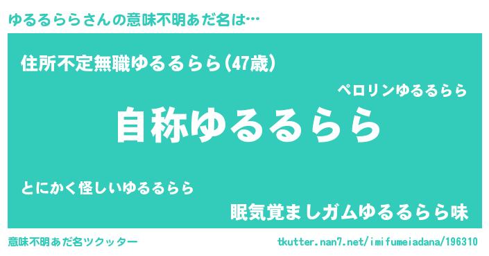 | 肩書あだ名 | 『ゆるるらら総統』『ゆるるらら教官』 |