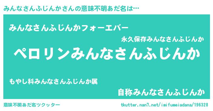 | ヒーロー風カッコイイあだ名 | 『スーパーミンナサンフジンカ』 |