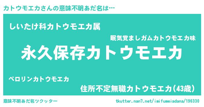 | 男性向けラノベタイトル風あだ名 | 『カトウモエカという概念が存在しない退屈な世界 』 |