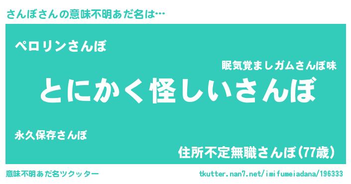 | 欧米人風あだ名 | 『さんぼ・ステッグマイヤー』 |
