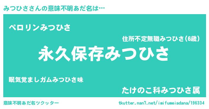 | ヘコむあだ名 | 『みつひさ(震え声)』『みつにー』 |