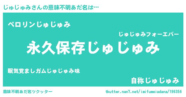 | 男性向けラノベタイトル風あだ名 | 『じゅじゅみという概念が存在しない退屈な世界 』 |
