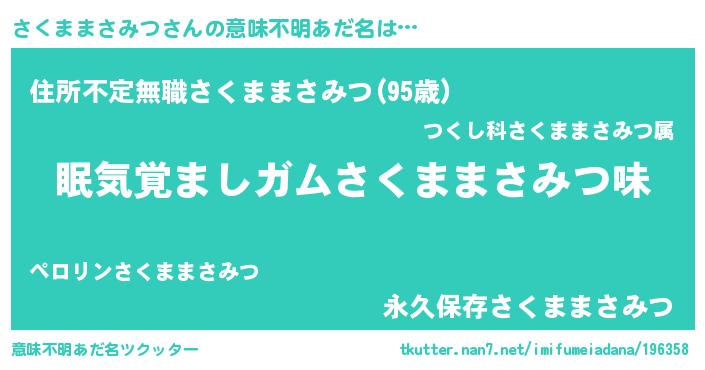 | ヘコむあだ名 | 『さくままさみつ(笑)』『さくっふぃ~』 |