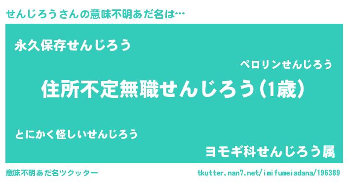 | 男性向けラノベタイトル風あだ名 | 『この素晴らしい世界にせんじろうを!』 |