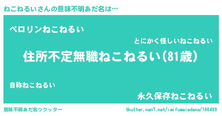 | 男性向けラノベタイトル風あだ名 | 『この素晴らしい世界にねこねるいを!』 |