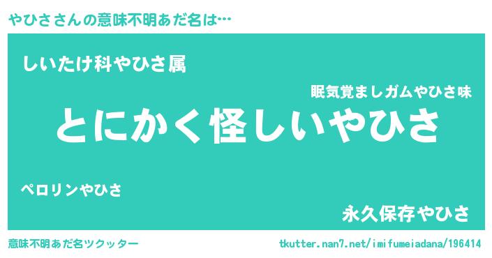 | ポケモン風あだ名 | 『ヒヤヒサ』『ヤヒキング』 |