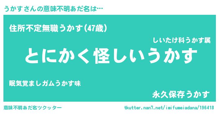 | ヘコむあだ名 | 『うかぷりん』『うかす(笑)』 |