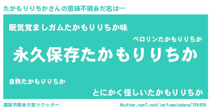 | 男性向けラノベタイトル風あだ名 | 『たかもりりちかという概念が存在しない退屈な世界 』 |