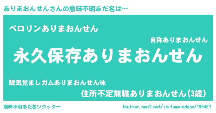 | ヘコむあだ名 | 『ありまおんせん(小並感)』『ありにー』 |