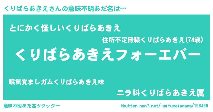 | 欧米人風あだ名 | 『くりばらあきえクリステル』 |
