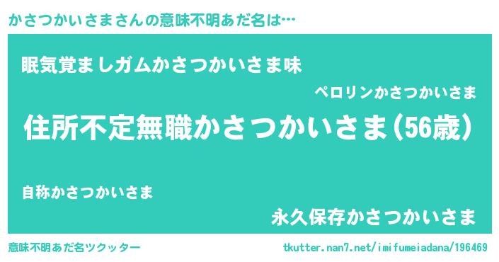 | 男性向けラノベタイトル風あだ名 | 『うちのかさつかいさまが世界を掌握している!』 |