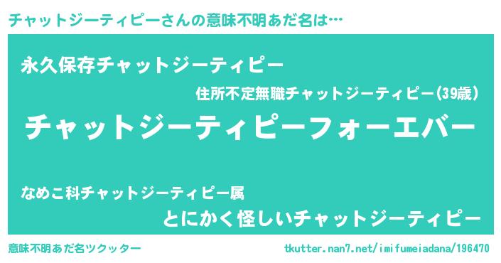 | ファンタジー風あだ名 | 『エターナルチャットジーティピーー』 |
