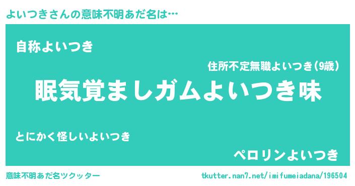 | 欧米人風あだ名 | 『ダニエルよいつき』『マイケルよいつき』 |