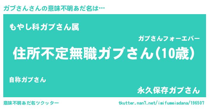 | 男性向けラノベタイトル風あだ名 | 『魔弾の王とガブさん』 |