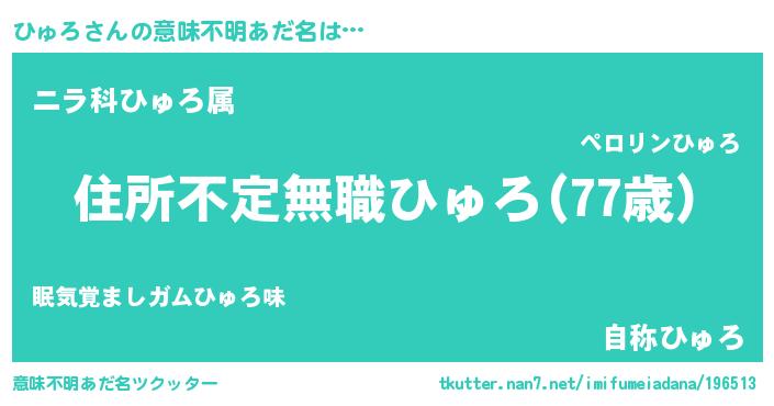 | 料理風あだ名 | 『ひゅろのカルパッチョ風』 |