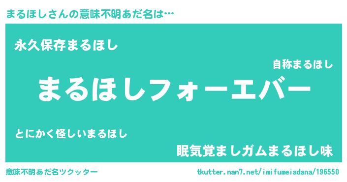 | 女子向けラノベタイトル風あだ名 | 『まるほしの雑貨屋さん』『闇のまるほし』 |