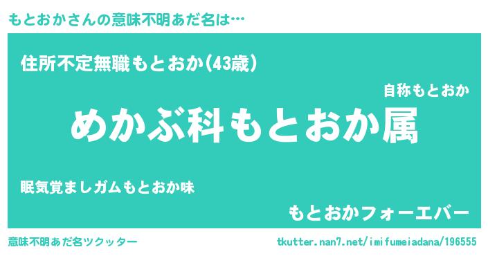 | 男性向けラノベタイトル風あだ名 | 『モトオカスレイヤー』 |