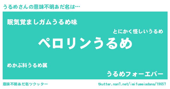 | ヘコむあだ名 | 『うるっふぃ~』『牛乳』『うるお』 |