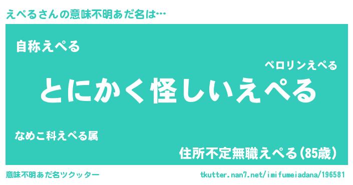 | 男性向けラノベタイトル風あだ名 | 『えぺるの嫁は女の子じゃないと思った?』 |