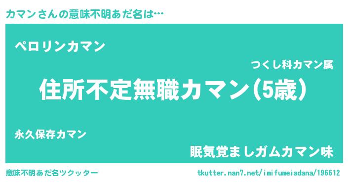| 男性向けラノベタイトル風あだ名 | 『魔弾の王とカマン』『カマンの憂鬱』 |