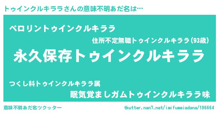 | ヘコむあだ名 | 『トゥインクルキララ(小並感)』『トゥにー』 |