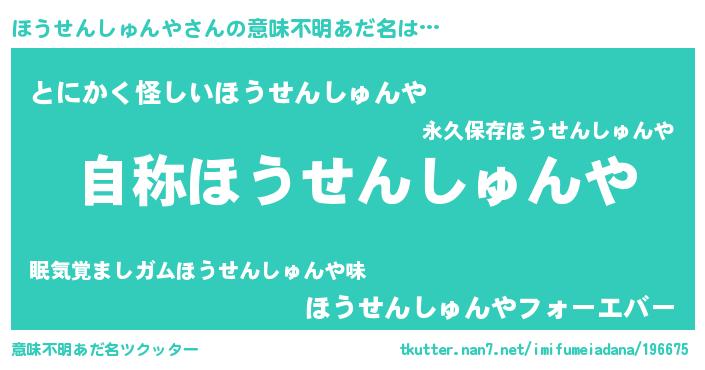 | ポケモン風あだ名 | 『ホウセウス』『ヒホウセンシュンヤ』 |