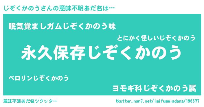| ヘコむあだ名 | 『じぞくかのう(遠い目)』『じぞぷりん』 |