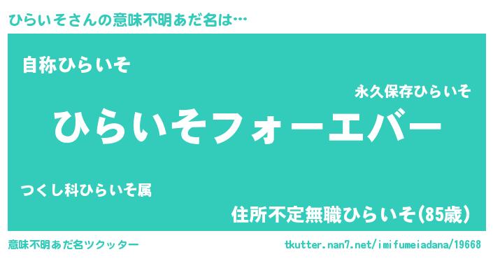 | ファンタジー風あだ名 | 『エターナルヒライソー』『ゼヒラトゥ』 |