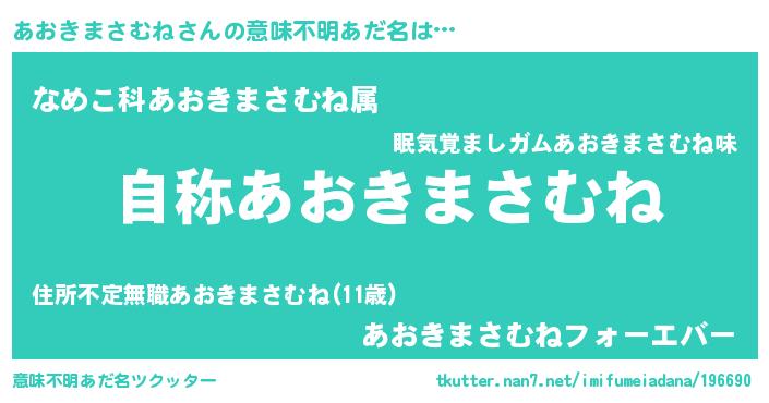 | 肩書あだ名 | 『あおきまさむね総統』 |