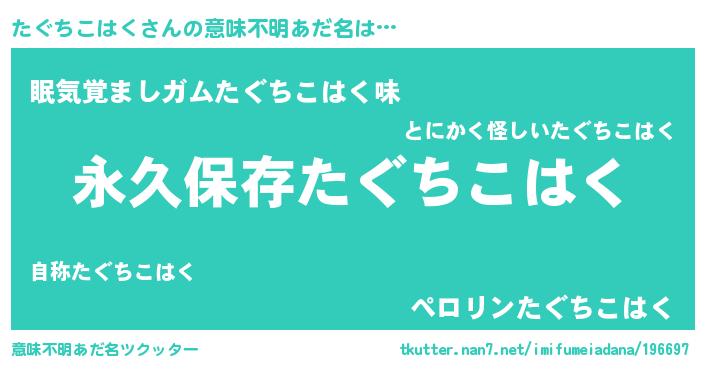 | ヘコむあだ名 | 『たぐちこはく(笑)』『たぐもー』 |