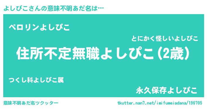 | 欧米人風あだ名 | 『アンジェラ・よしぴこ』 |
