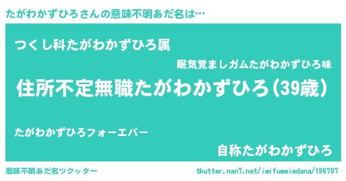 | 男性向けラノベタイトル風あだ名 | 『魔弾の王とたがわかずひろ』 |