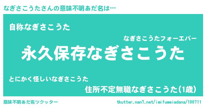 | 胡散臭い通販商品みたいなあだ名 | 『絶対に幸福をもたらす健康食品…その名も「なぎさこうた」』 |
