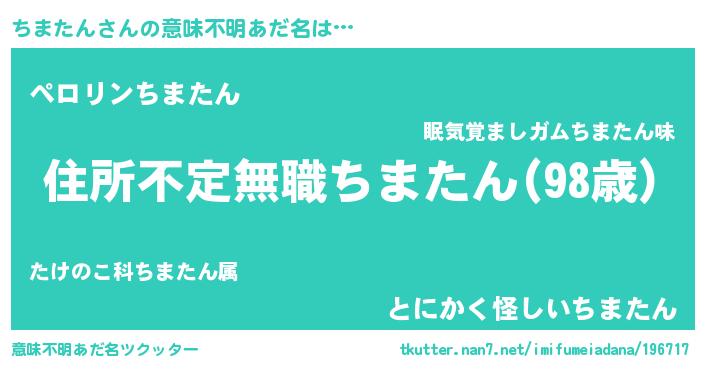 | 胡散臭い通販商品みたいなあだ名 | 『あなたにだけ特別に提供する世界で10本だけ現存している希少なブランデー…その名も「ちまたん」』 |
