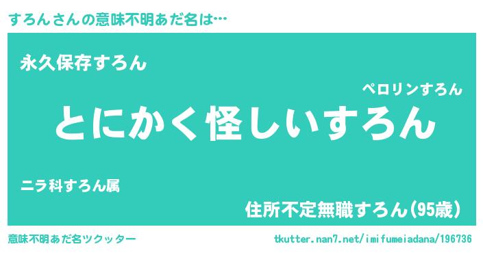 | 欧米人風あだ名 | 『アンジェラ・すろん』『ウサインすろん』 |