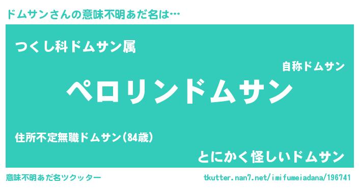 | 男性向けラノベタイトル風あだ名 | 『うちのドムサンが世界を掌握している!』 |