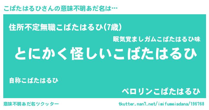 | 男性向けラノベタイトル風あだ名 | 『こばたはるひの嫁は女の子じゃないと思った?』 |