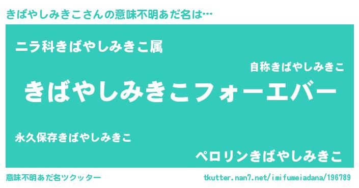 | 欧米人風あだ名 | 『きばやしみきこクリステル』 |
