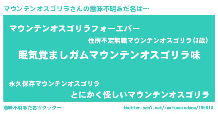 | ヒーロー風カッコイイあだ名 | 『正義の使者マウンテンオスゴリラ』 |