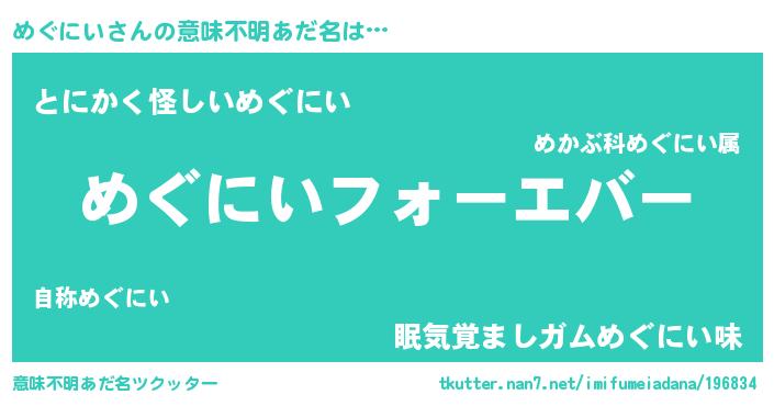 | 2回繰り返すあだ名 | 『めめぐぐ』『いちゃいちゃ』 |