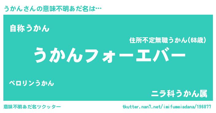 | ヒーロー風カッコイイあだ名 | 『ウルトラうかんマン』『仮面ウカダー』 |