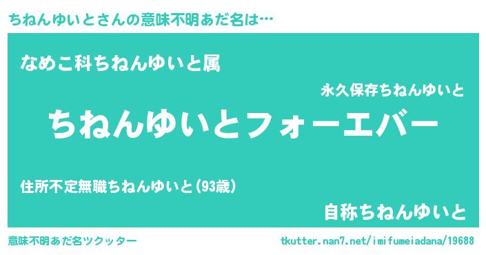 | 男性向けラノベタイトル風あだ名 | 『ちねんゆいとに滅ぼされるだけの簡単なお仕事です』 |