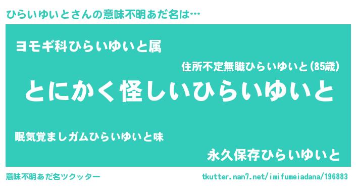 | ヘコむあだ名 | 『ひらっ子』『ひらいゆいと(笑)』 |
