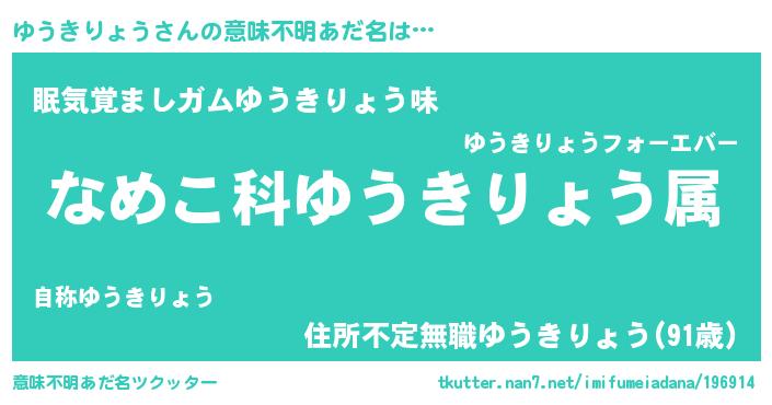 | 男性向けラノベタイトル風あだ名 | 『転生したらゆうきりょうだった件』 |